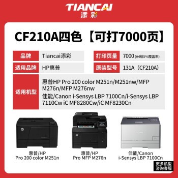 - 商品名稱:添彩CF210A硒鼓四色套裝適用HP200/M276nw/M251N/hp1215